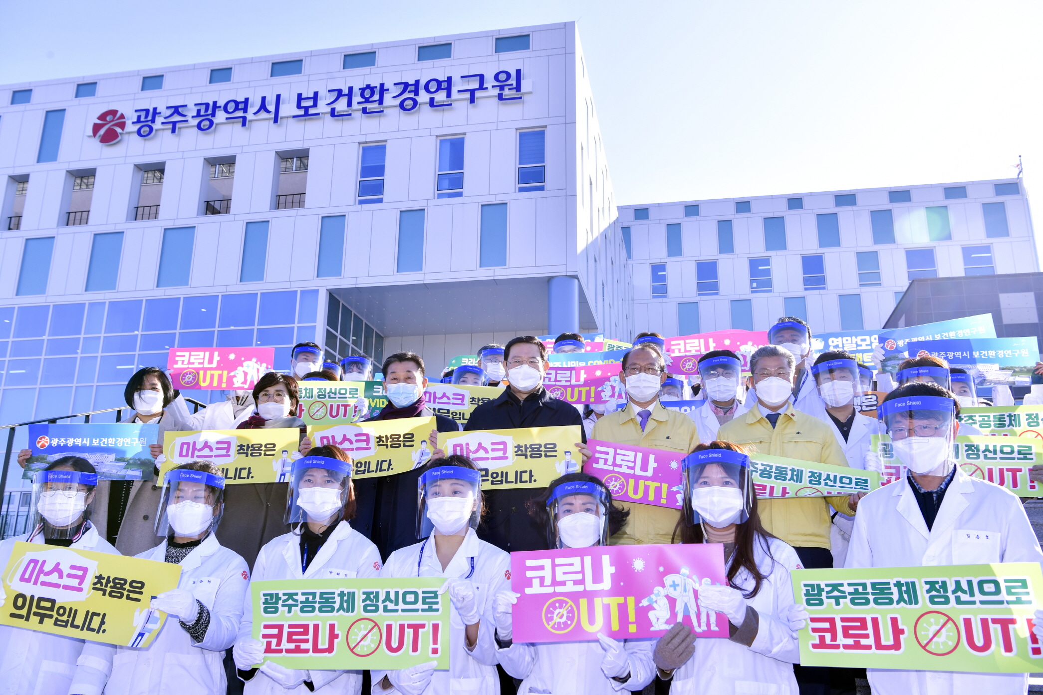 행사는 신청사 건립 경과보고, 24시간 체계로 가동 중인 코로나19 검사실과 대기환경종합상황실 격려 방문, 코로나19로 인해 어려움을 겪고 있는 시민들에게 응원의 메시지 전달을 위한 코로나19 극복 퍼포먼스 등 순으로 진행됐다.
