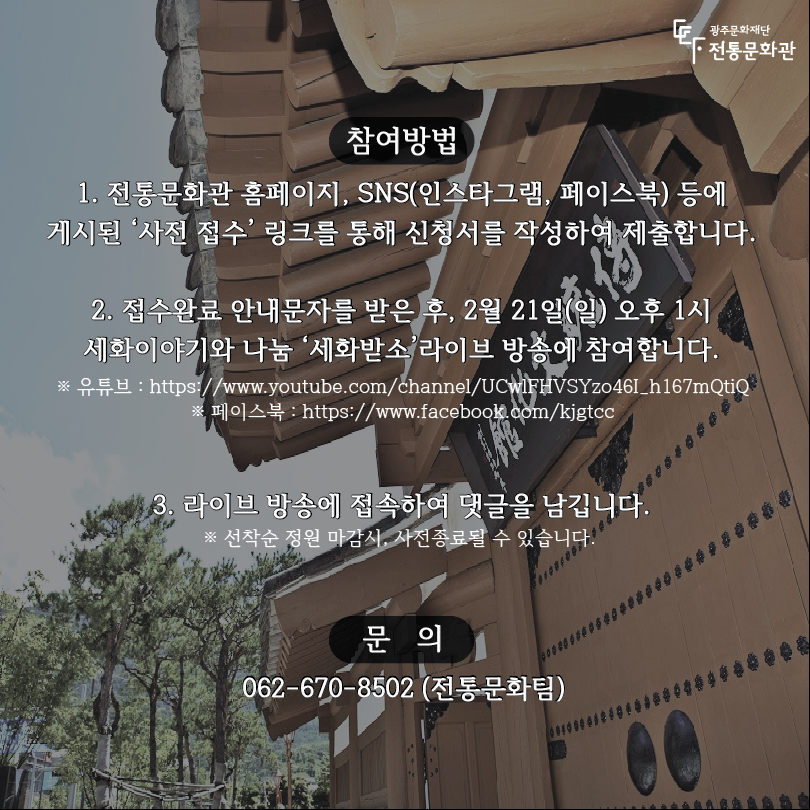 ※ 선착순 정원 마감시 사전종료될 수 있으며, 참여신청은 라이브 방송 종료 전까지 가능합니다.
