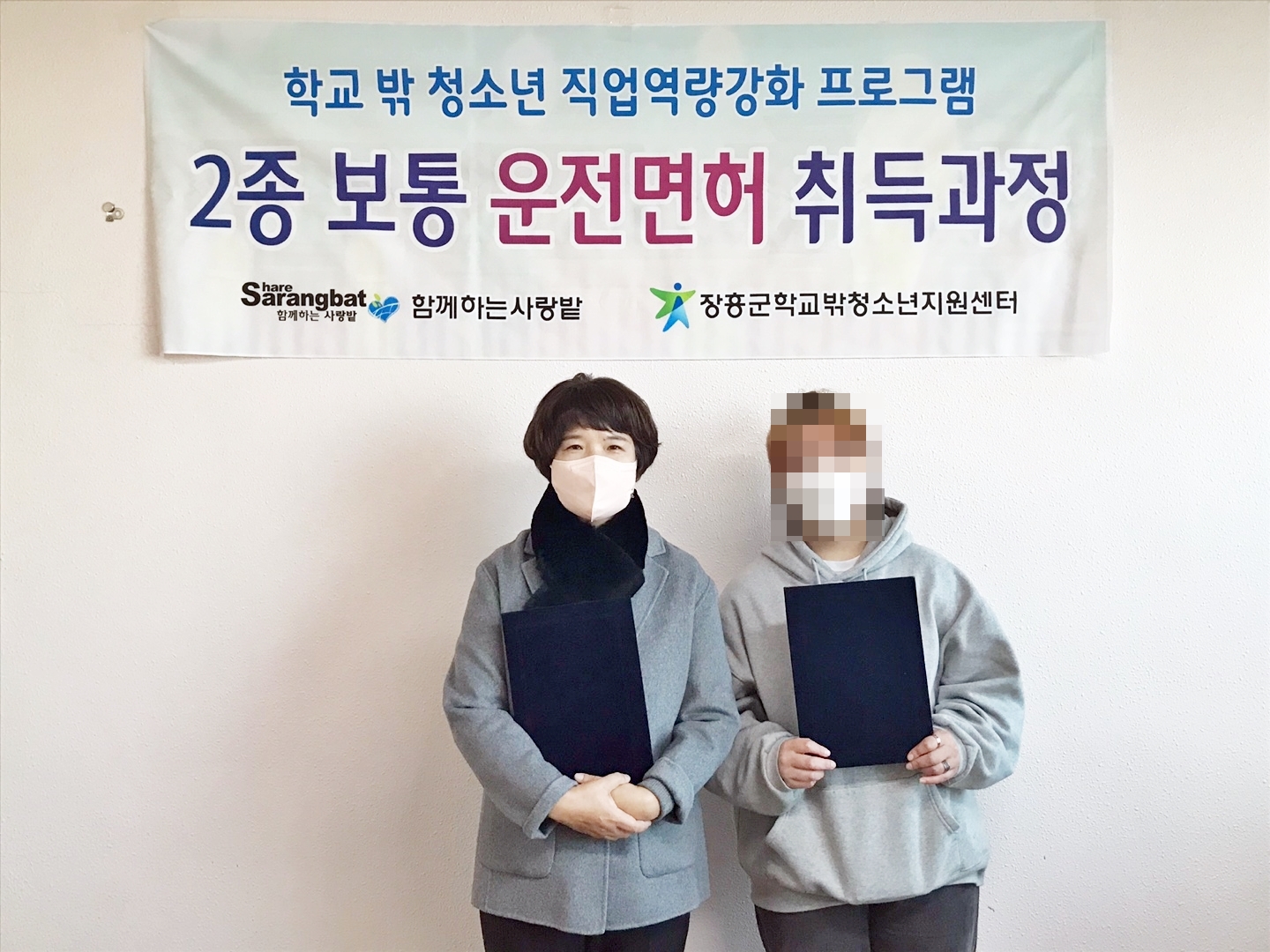 11월부터 한 달여간 학교 밖 청소년을 대상으로 운전면허 취득 과정 프로그램을 시행했으며, 참여자 2명은 학과시험, 기능시험, 도로주행 시험을 무사히 마치고 전원 운전면허를 취득했다.