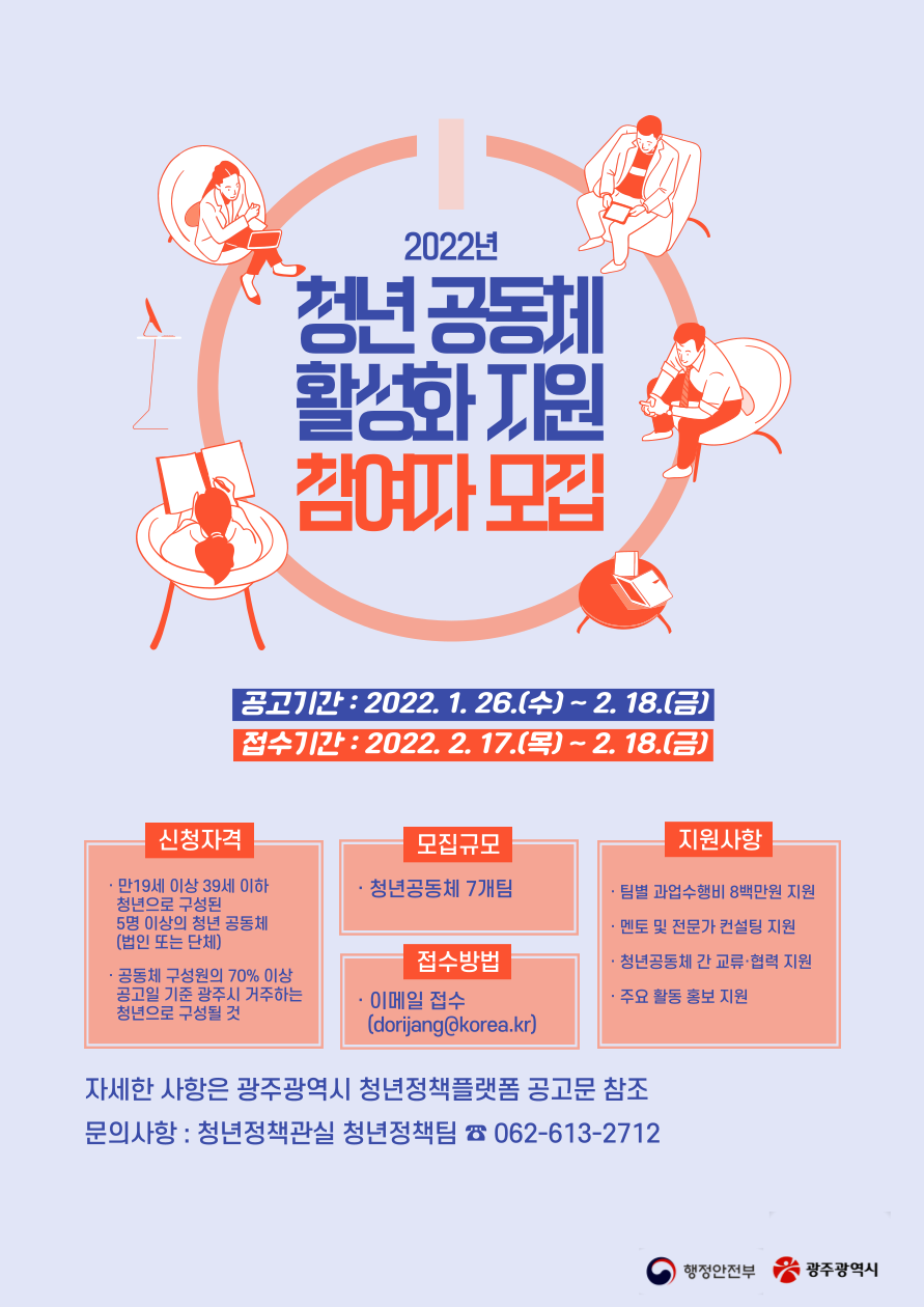※ 문의 : 광주광역시 청년정책관실 청년정책팀(062-613-2712)