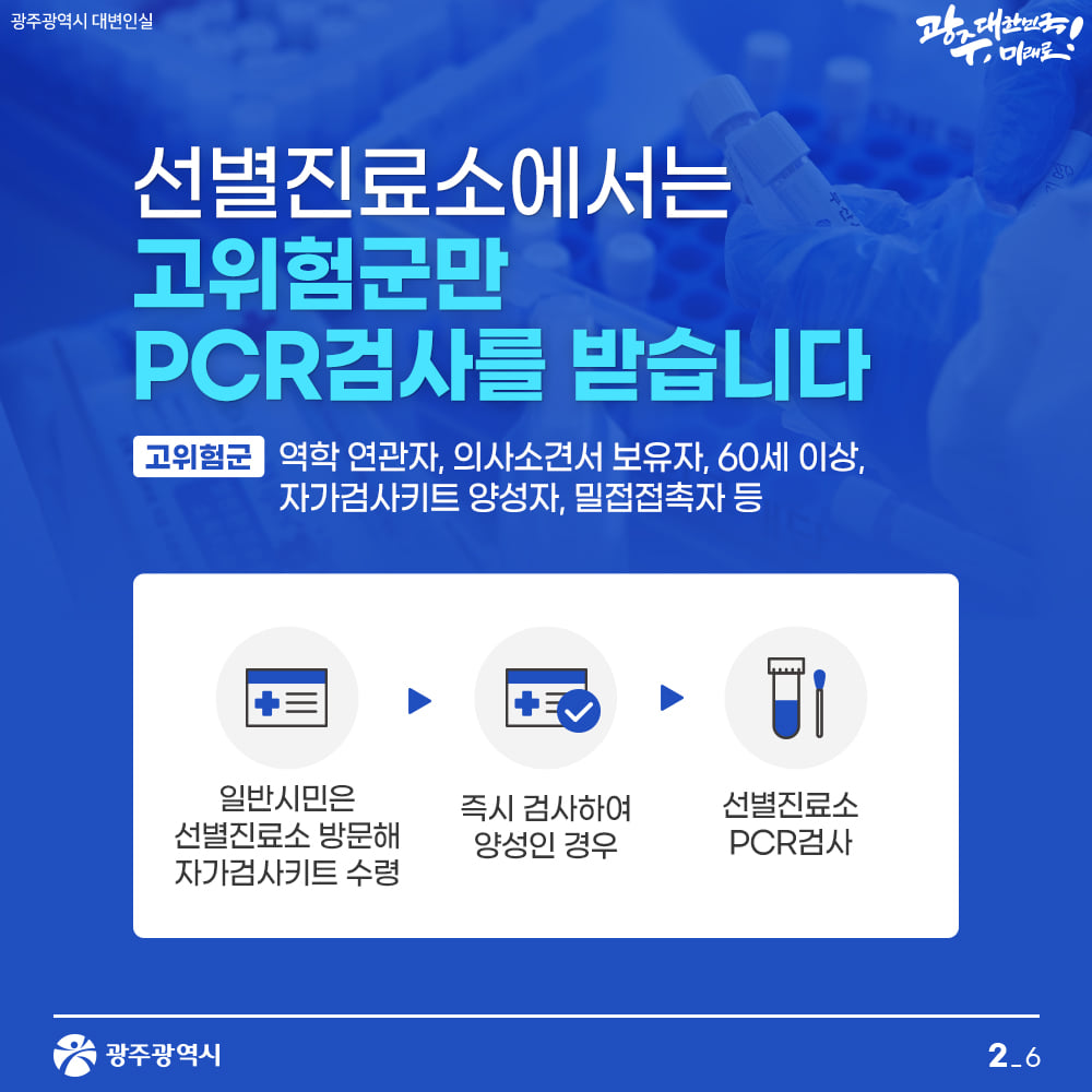 ✔선별진료소에서는 고위험군만 PCR 검사를!