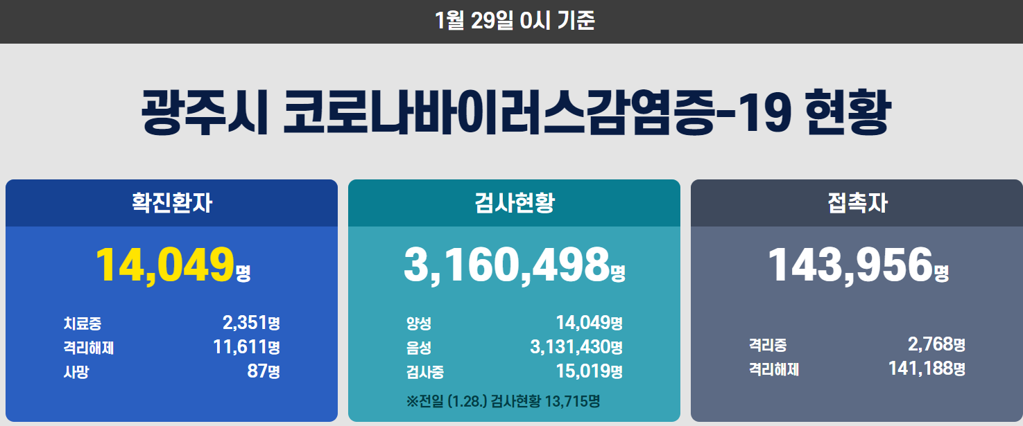 | 광주광역시 1월 26일부터 새로운 코로나19검사·치료체계가 시행 (0) | 2022.01.27 |