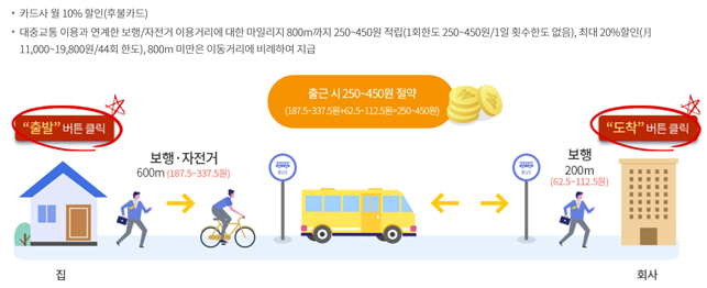 - 대중교통 이용할 때 걷거나 자전거 타면 교통비 최대 30% 할인
