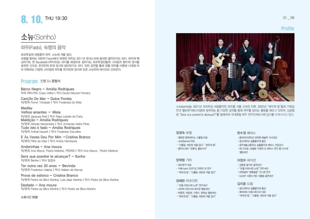 📍 8. 10.(목) : 소뉴 ‘파두(Fado), 숙명의 음악’