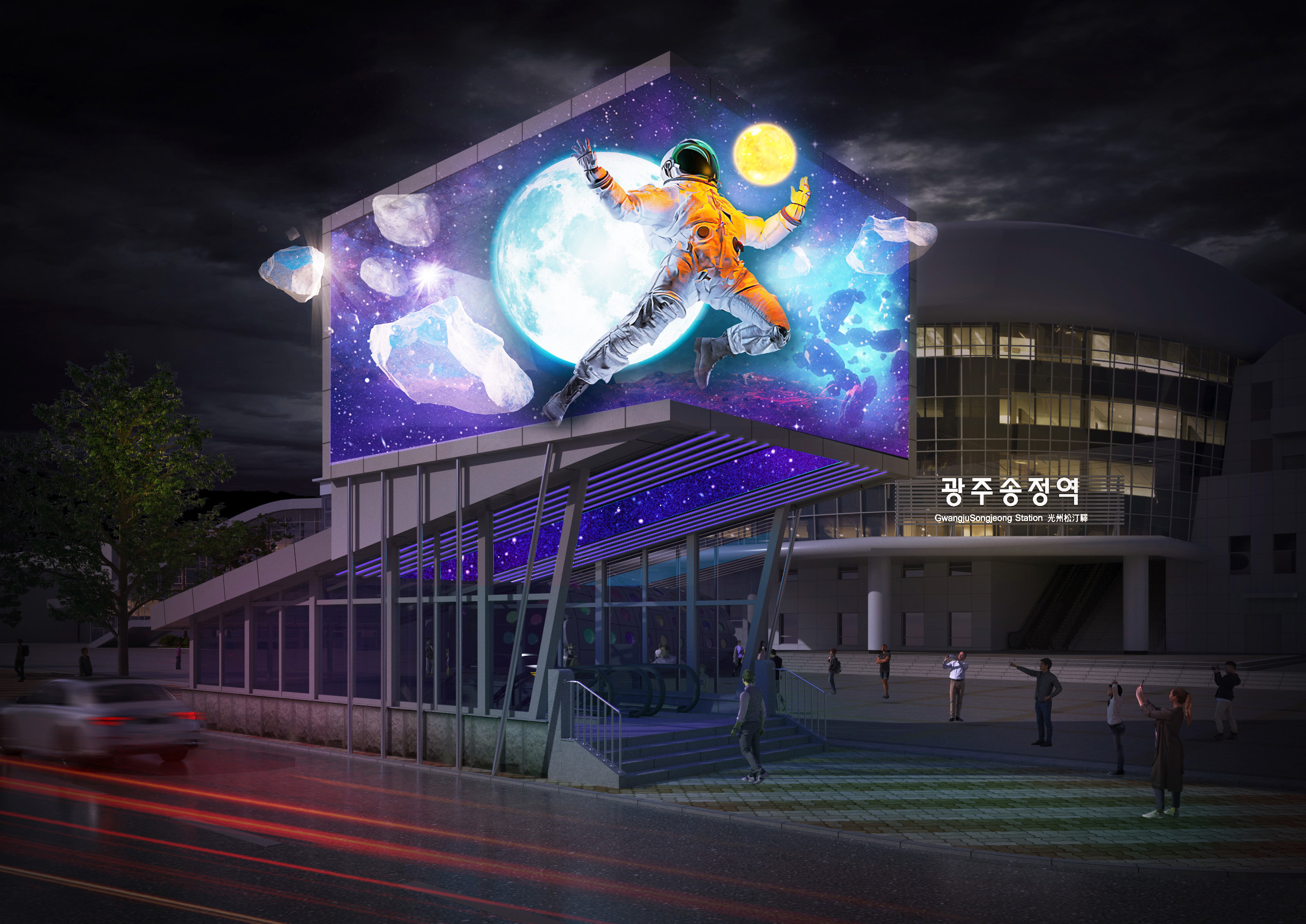 광주 송정역은 ‘아트 정션(Art Junction)’이라는 테마 아래 미디어 아트를 통해 사람, 예술, 문화가 교차하고 번창하는 광주시의 역동적인 융합을 선보입니다.