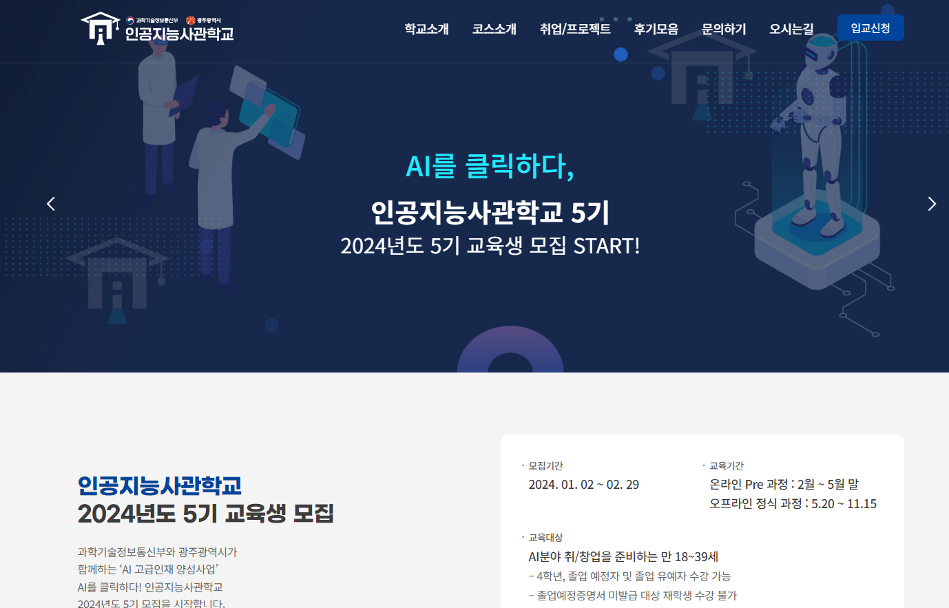 인공지능사관학교 주소 : 광주광역시 동구 제봉로 92 (대성학원 1-3층) 전화문의 : 062-710-3257~9