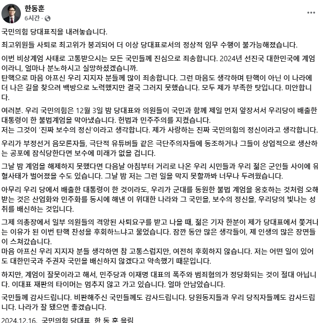 특히한동훈전대표의사퇴는국민의힘내부에서큰파장을일으켰습니다.그의리더십에기대를걸었던이들은실망감을숨기지못하고있습니다."왜지금이시점에사퇴를했냐"는불만도쏟아지고있죠.