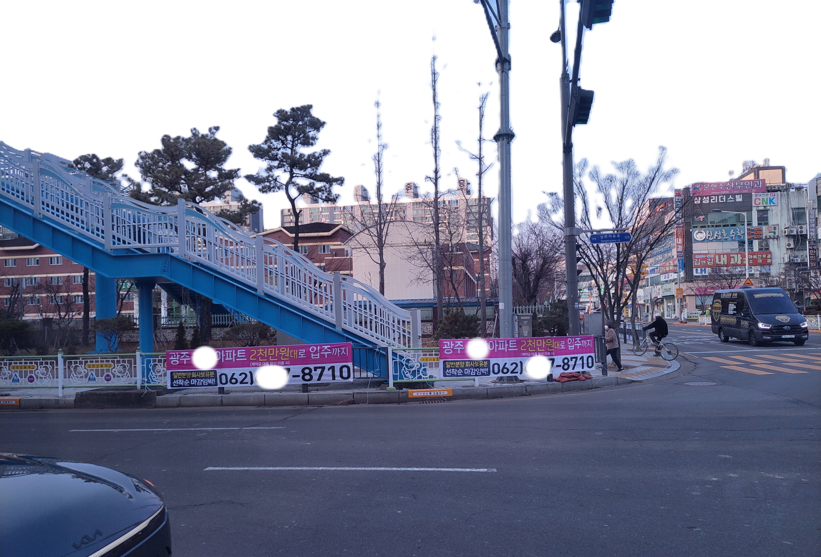 - 보행자 통행을 방해하거나 운전자 시야를 가리는 현수막