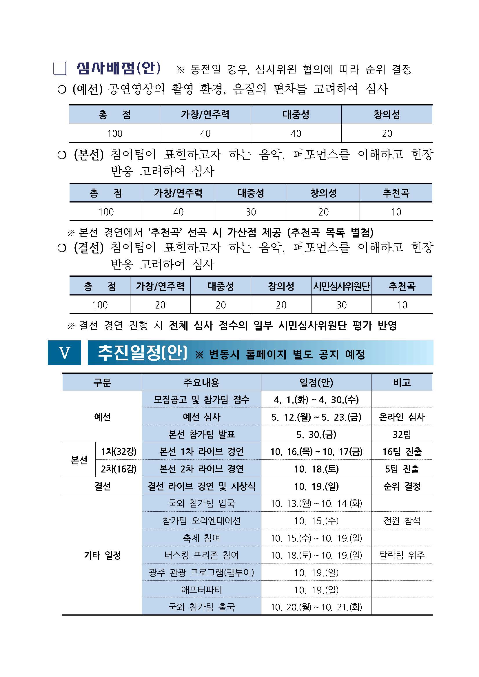 - 예선은 온라인 영상 심사, 본선과 결선은 라이브 경연