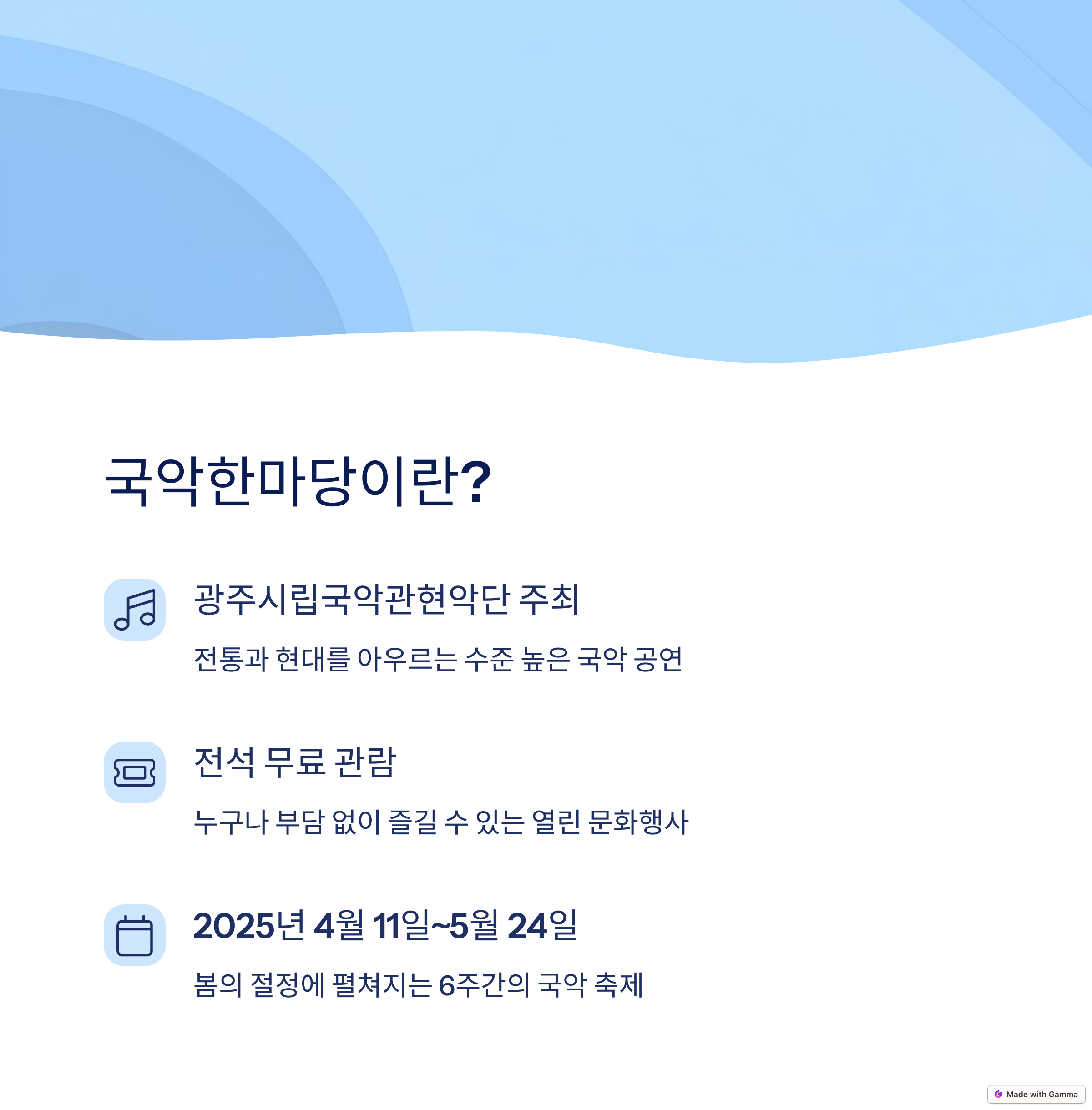 🎵 광주광역시에서 펼쳐지는 국악한마당! 찾아가는 문화공연 <국악 콘서트>