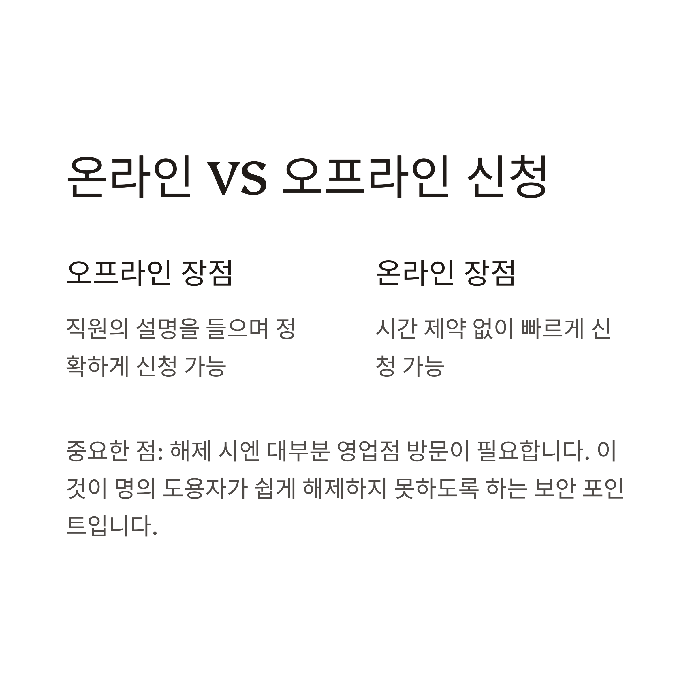 - 공통 단점: 해제 시엔 무조건 영업점 방문 필요