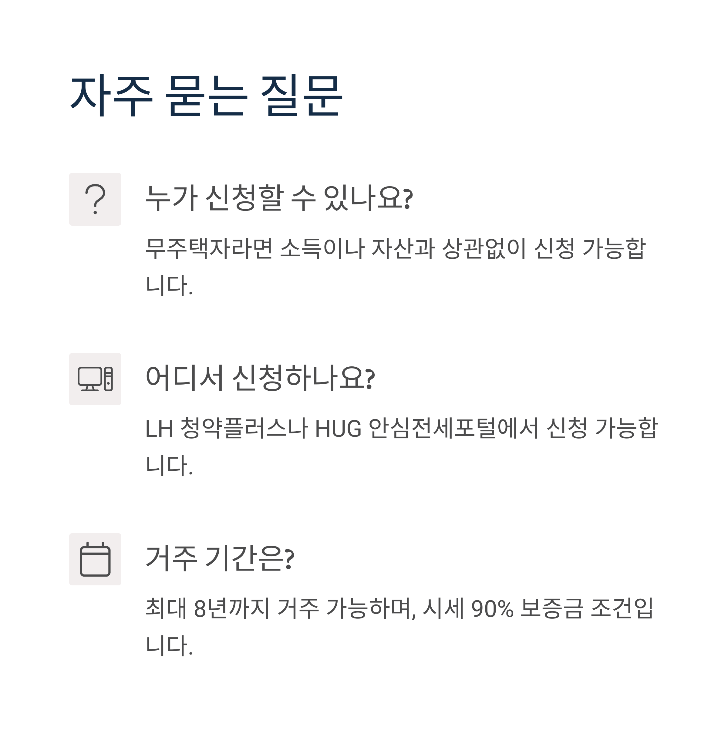 핵심: 무주택자라면 소득·자산 기준 없이 누구나 신청 가능