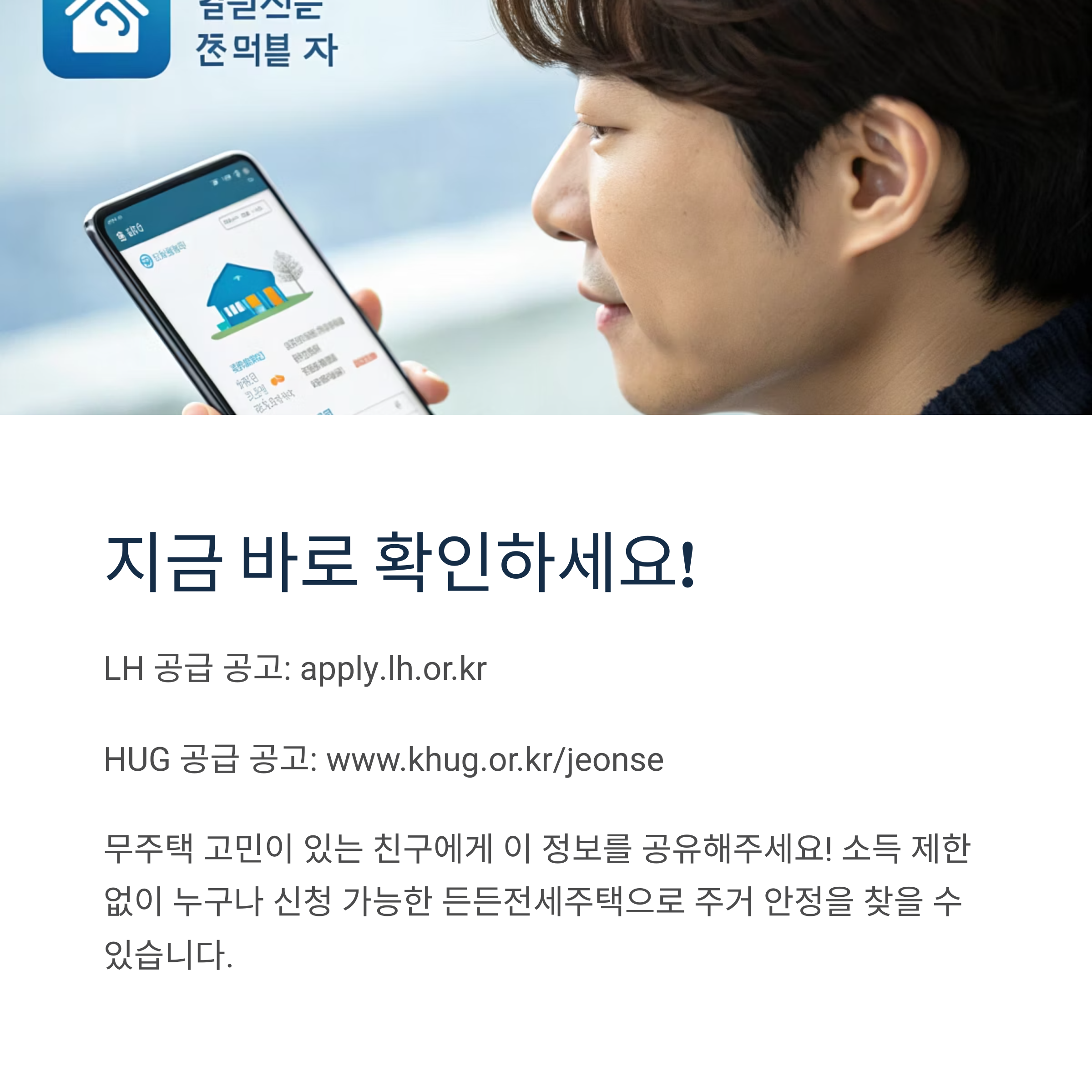 "LH 청약플러스나 HUG 안심전세포털에서 입주 공고 확인 후 신청하실 수 있어요."