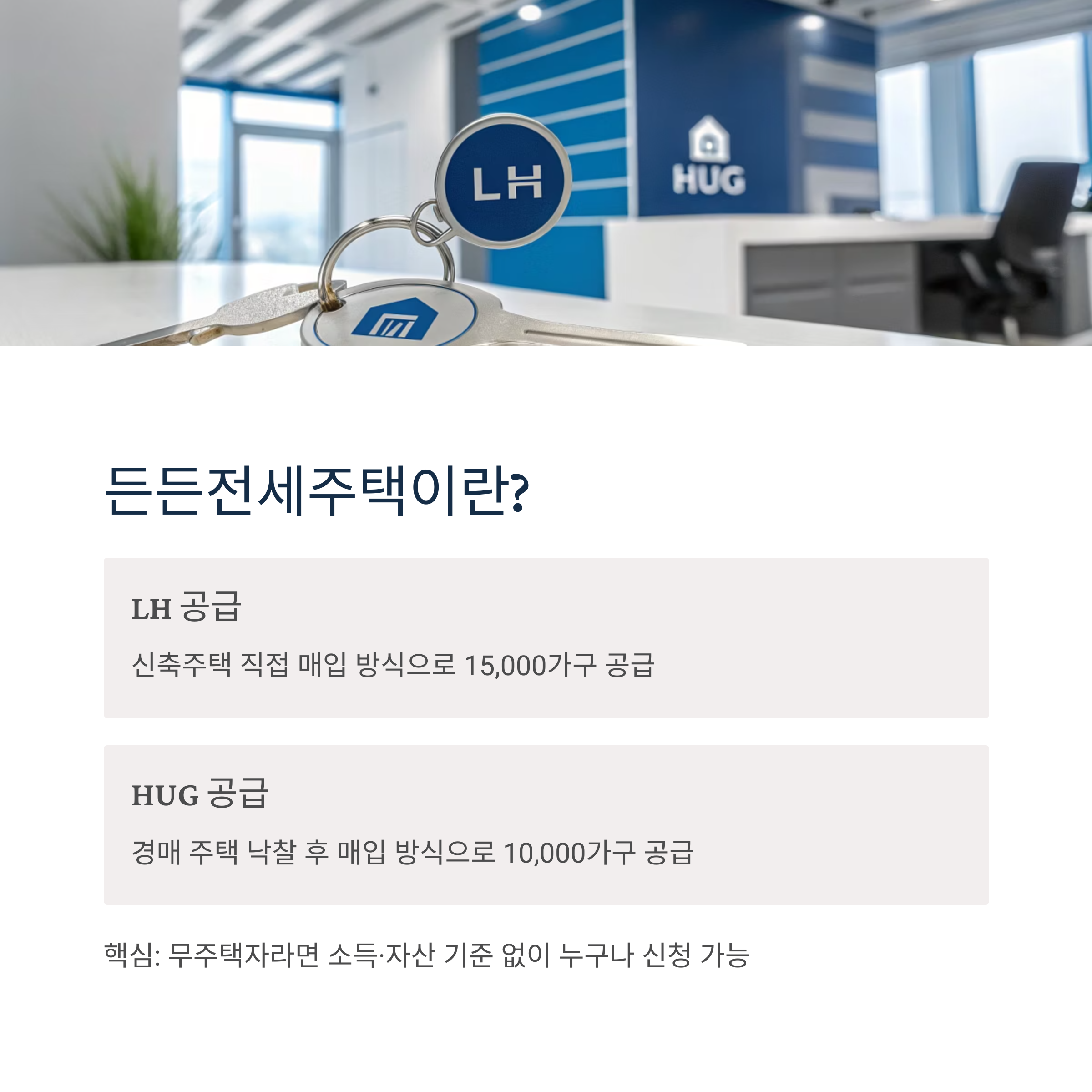 든든전세주택은 LH와 HUG가 주도하는 새로운 형태의 공공전세주택으로,